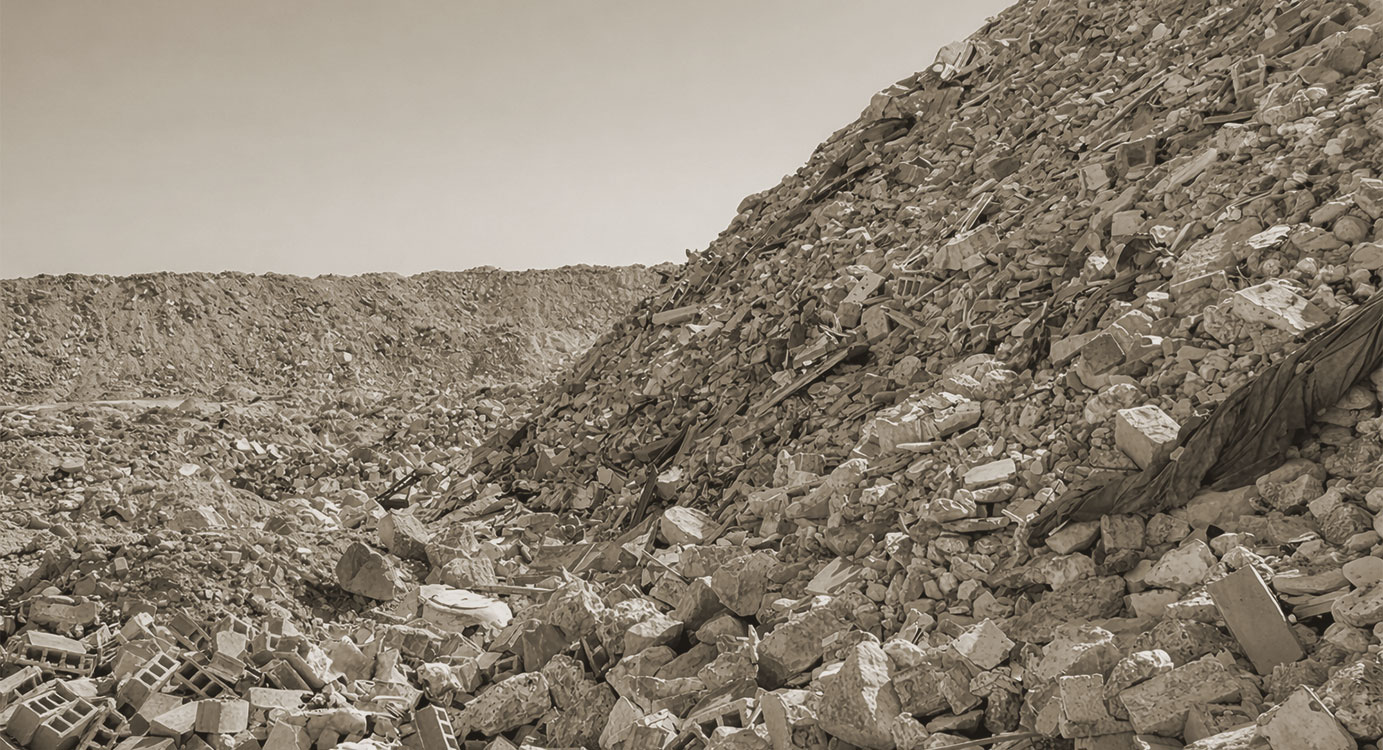 The scale of the problem was formidable: vast stockpiles of demolition rubble at a remote desert site in Rawdat Rashed landfill site, with no mains power and no piped water supply. Processing this material to a specification demanding less than 3% of fines at 63 microns, while achieving consistent grading and low contamination, required a purpose-engineered solution from the ground up.